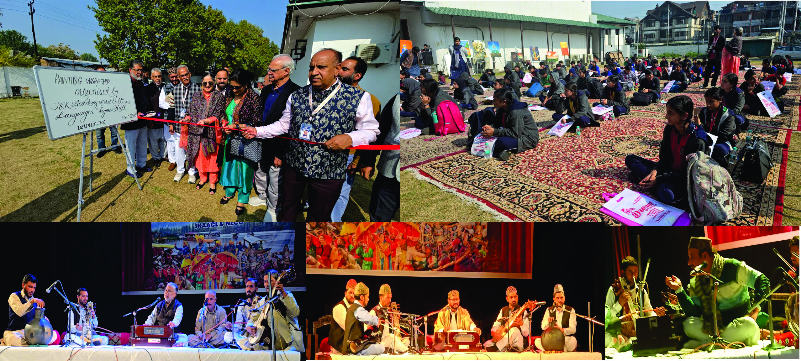 سرینگر کِس ٹیگور ہالس منٛز چھُ اکھ رنگارنگ ثقافتی پروگرام جٲری، یُس جموں و کشمیرٕچ ڈیلفِک کونسل، کلچرل اکیڈمی تہٕ این زیڈ سی سی یَن مُشترکہٕ طور منعقد کوٚرمُت چھُ۔ ریاستی تہٕ قومی دۄشوٕنی سطحَو پٮ۪ٹھ کٔر فنکارو تہٕ دانشورو شرکت۔ تہوار کہِ دٔیمہِ دۄہ کوٚر پینٹنگ ورکشاپُک افتتاح ڈیلفِک کونسلٕچ مشیر ارچنا چودھری، کونسلُک صدر انجینئر اشوک سنگھ، تہٕ کلچرل اکیڈمی ہٕنٛدِ سیکریٹری ہرویندر کورَن ۔ کیندریہ ودیالیہ سکول سونور سری نگرٕکۍ تہٕ فائن آرٹس کالجَس سۭتۍ وابستہٕ طالبہِ علمَو کٔر ورکشاپَس منٛز سرگرمی سان حصہٕ۔ کونسلُک صدر انجینئر اشوک سنگھَن کوٚر شرکَت کَرن والٮ۪ن خٲر مقدم۔ اتھ تقریبس منٛز آیہِ کلاسیکی موسیٖقی ہٕنٛز دِلچسپ کارکردٕگی شٲمِل، یَتھ منٛز استاد محمد یعقوب شیخ سٕنٛز کٲشِر صوفی موسیقی، گلزار احمد گنائی تہٕ عبدالرشید حافظ سٕنٛز چھکری تہٕ چانڈی پرفارمنس تہٕ وکرم سائروہیوال سُنٛد اکھ صوفی اجتماع شٲمِل اوس، یَتھ سامعینَن ہٕنٛدِ طرفہٕ داد دِنہٕ آیہ