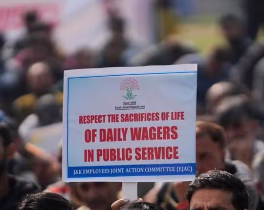 جوٚمَس منٛز عارضی مُلٲزِمن ہُنٛد احتجاج.