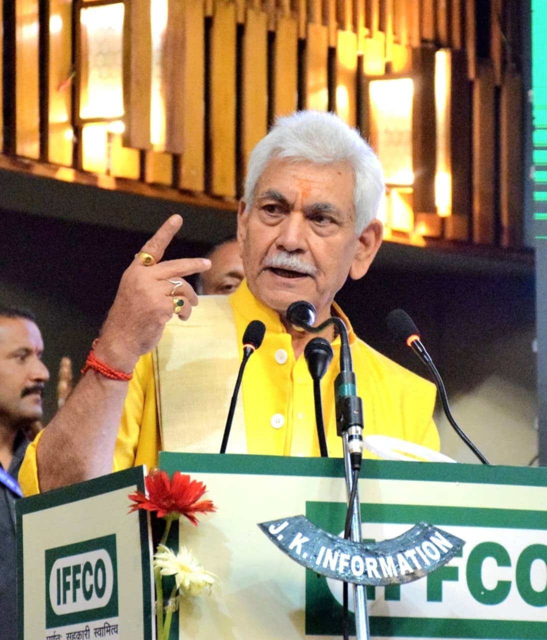 ایل جی منوج سنہاہَن کٔر آز IFFCO دٔسۍ مُنعقد کٔرمٕژ زنانہٕ فارمرز کانفرنسہِ منٛز شِرکت تہٕ اجتماعَس خٕطاب ۔