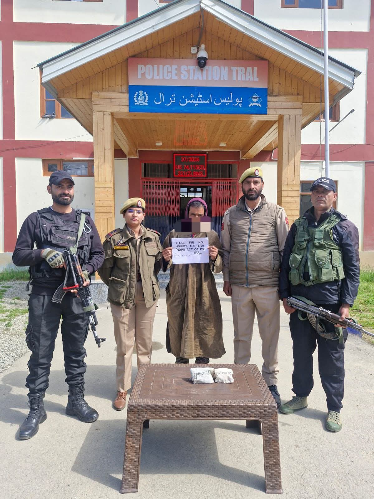 جٲری نشا مُکت جموں کشمیر مُہِم ہِنٛدِ حِصہٕ رٔنگۍ کوٚر ترال پُلیٖس تھانہٕ کہِ أکہِ پُلسہٕ ٹیٖمَن اکھ شخٕص گِرِفتار ییٚمِس راتسونا، ترال کِس روزَن وٲلِس جی ایچ محمد بھٹ سُنٛد نیٚچُو، عاشق حُسین بھٹ ناوٕ سٕتہِ گِرِفتار کرنہٕ آمُت۔تلٲشی دوران آیہِ أمۍ سٕنٛدِس قبضَس منٛز 50 گرام چارس تہٕ 125 گرام چارس پاؤڈر ہیوٗ مادٕ برآمد کرنہٕ۔اَمہِ مُطٲبِق چُھ ٹرال پُلیٖس تھانس منٛز ایف آئی آر نمبر 45/2026 ہس تحت قونوٗن کِس مُتعلقہٕ دفعاتن تحت مقدمہٕ درٕج کرنہٕ آمُت، تہٕ تفتیش چھُ شُروٗع کرنہٕ آمُت۔اونتی پورہ پُلیٖس چُھ نشا مُکت جموں و کشمیرٕچ مُہمہِ تحت منشیاتُک خطرٕ ختم کرنہٕ خٲطرٕ پنُن پختہ عزم دہراوان۔عام لوٗکَن چھُ زور دِنہٕ یِوان زِ تِم کٔرِن تعاون تہٕ نزدیٖکی پولیس تھانس سۭتۍ منشیاتٕچ غیر قانونی تجارت مُتعلِق کانٛہہ تہِ معتبر زانکٲری بٲگراونہٕ۔